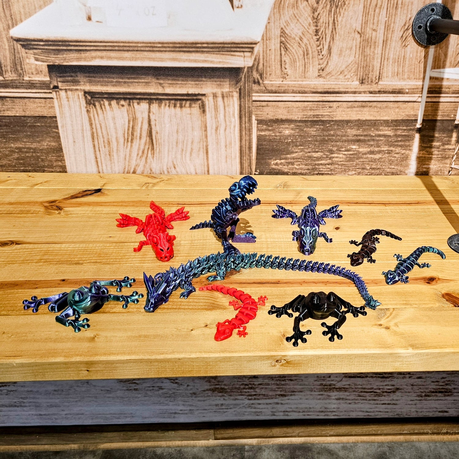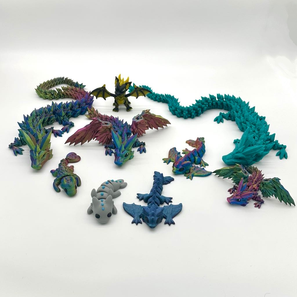 Explore a World of Dragons with Our Stunning Collection. Our collection has grown with the addition of several new dragons. These are all made with high quality PLA with our in house 3D Printers! Set your imagination soaring with our new Cinderwing dragon, or crawl around with our popular Crystal Dragon! With several models, sizes, and colors, find the dragon that sparks your imagination below!