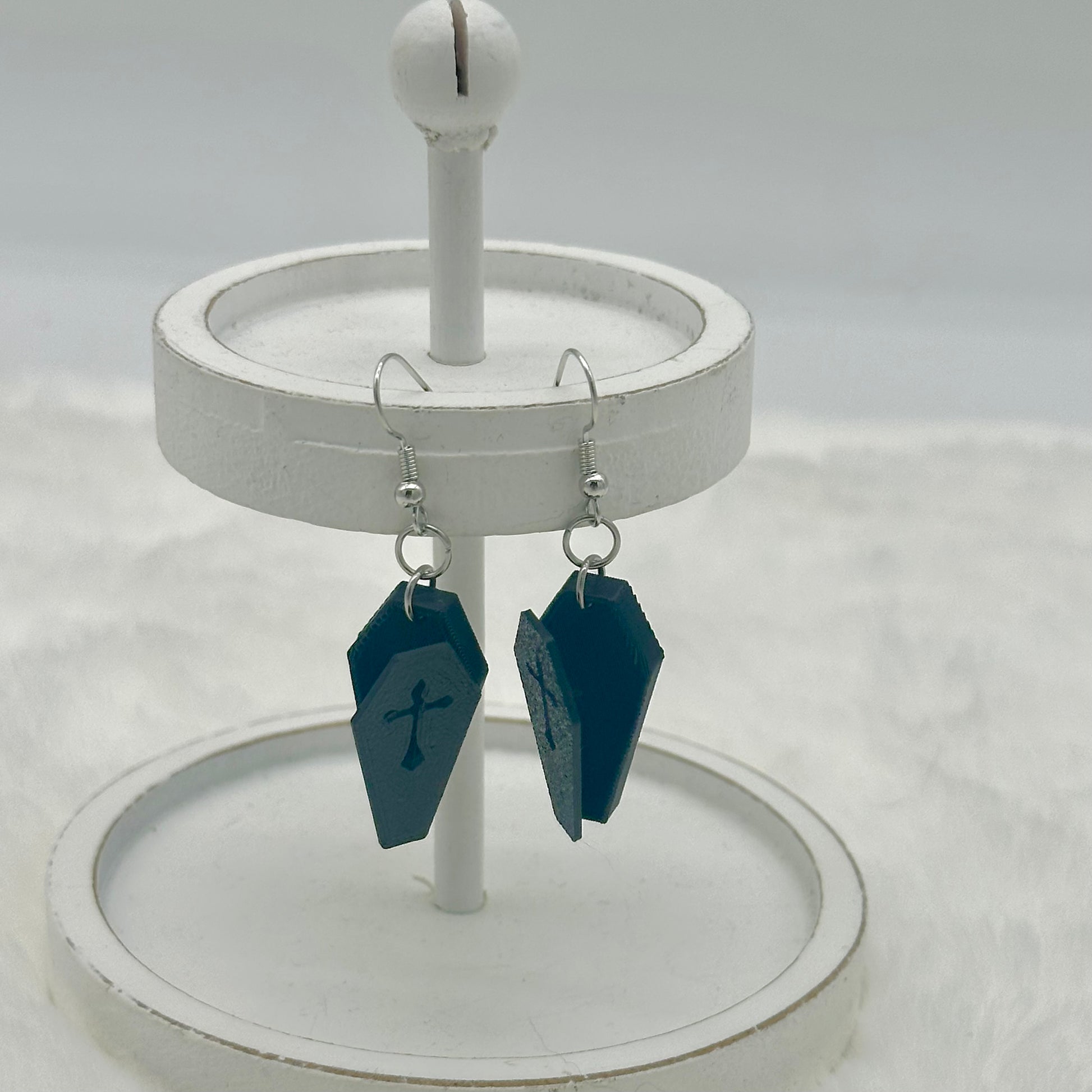 These Coffin Earrings combine festive Halloween charm with expert craftsmanship. 3D printed for precise detail and durability, they feature an adorable ghost-shaped cat design that’s both cute and unique. Lightweight and comfortable, they add a subtle seasonal touch to your look without compromising style or quality. Perfect for those seeking a tasteful yet playful accessory this Halloween season.