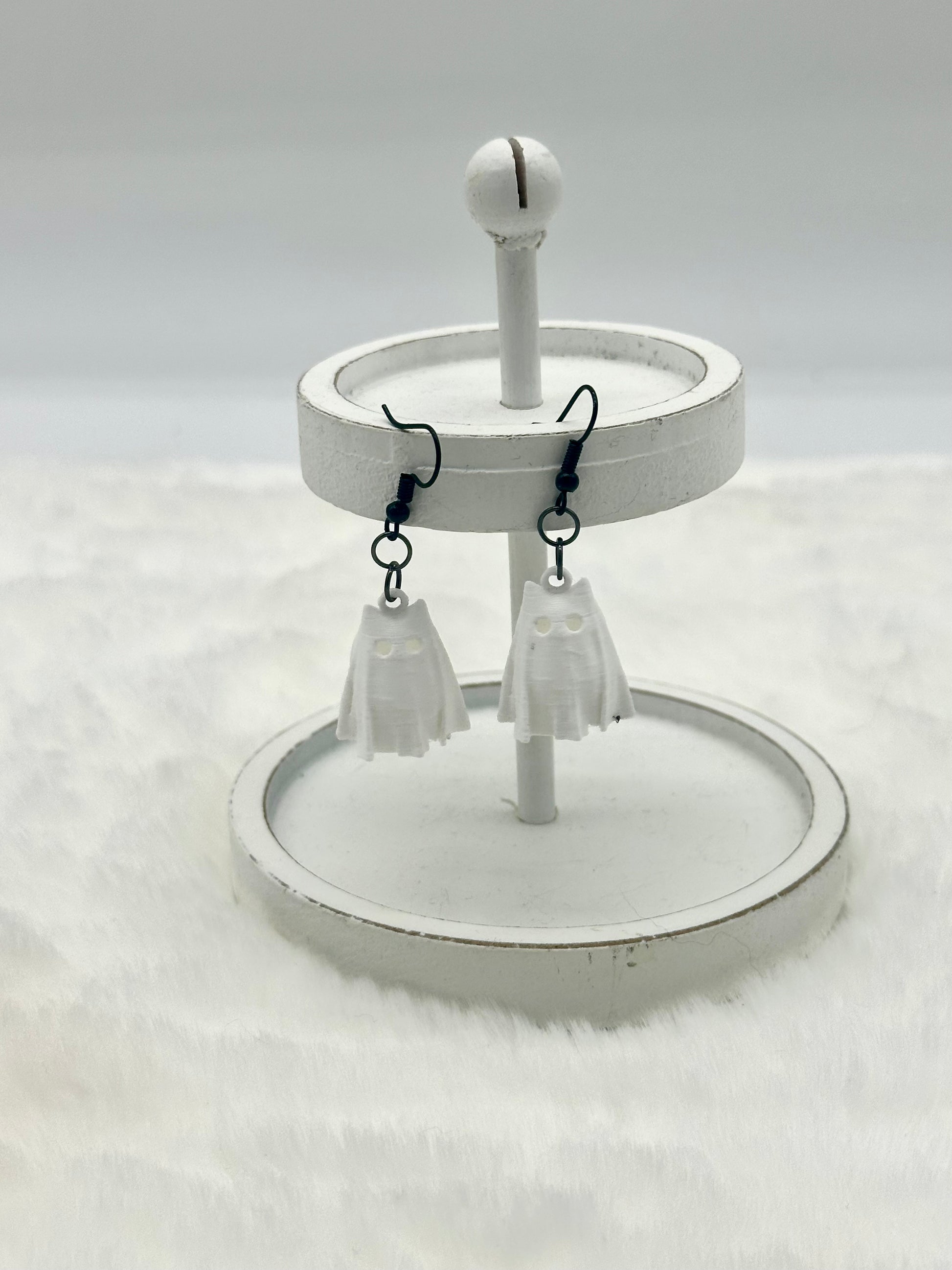 These Ghost Kitty Earrings combine festive Halloween charm with expert craftsmanship. 3D printed for precise detail and durability, they feature an adorable ghost-shaped cat design that’s both cute and unique. Lightweight and comfortable, they add a subtle seasonal touch to your look without compromising style or quality. Perfect for those seeking a tasteful yet playful accessory this Halloween season.